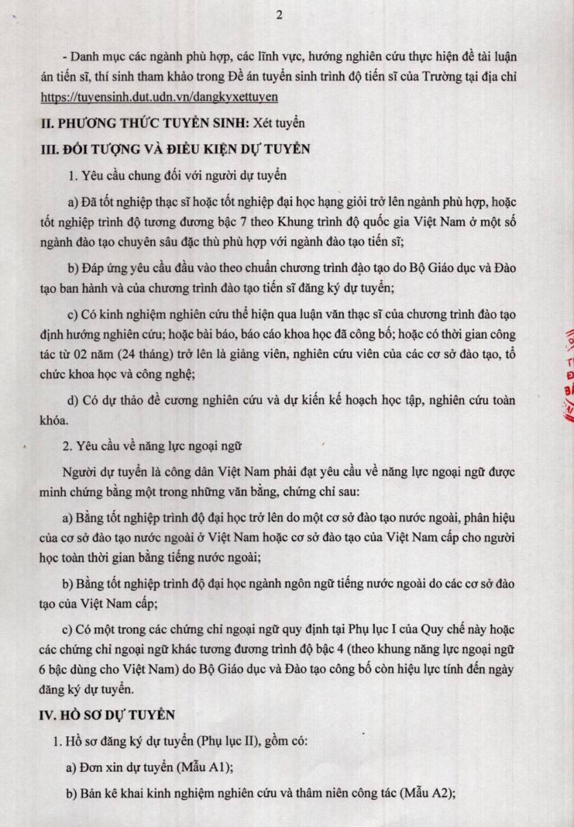- Có kinh nghiệm nghiên cứu (qua luận văn thạc sĩ, bài báo khoa học đã công bố), hoặc đã công tác ≥ 24 tháng tại cơ sở đào tạo/nghiên cứu/khoa học – công nghệ.