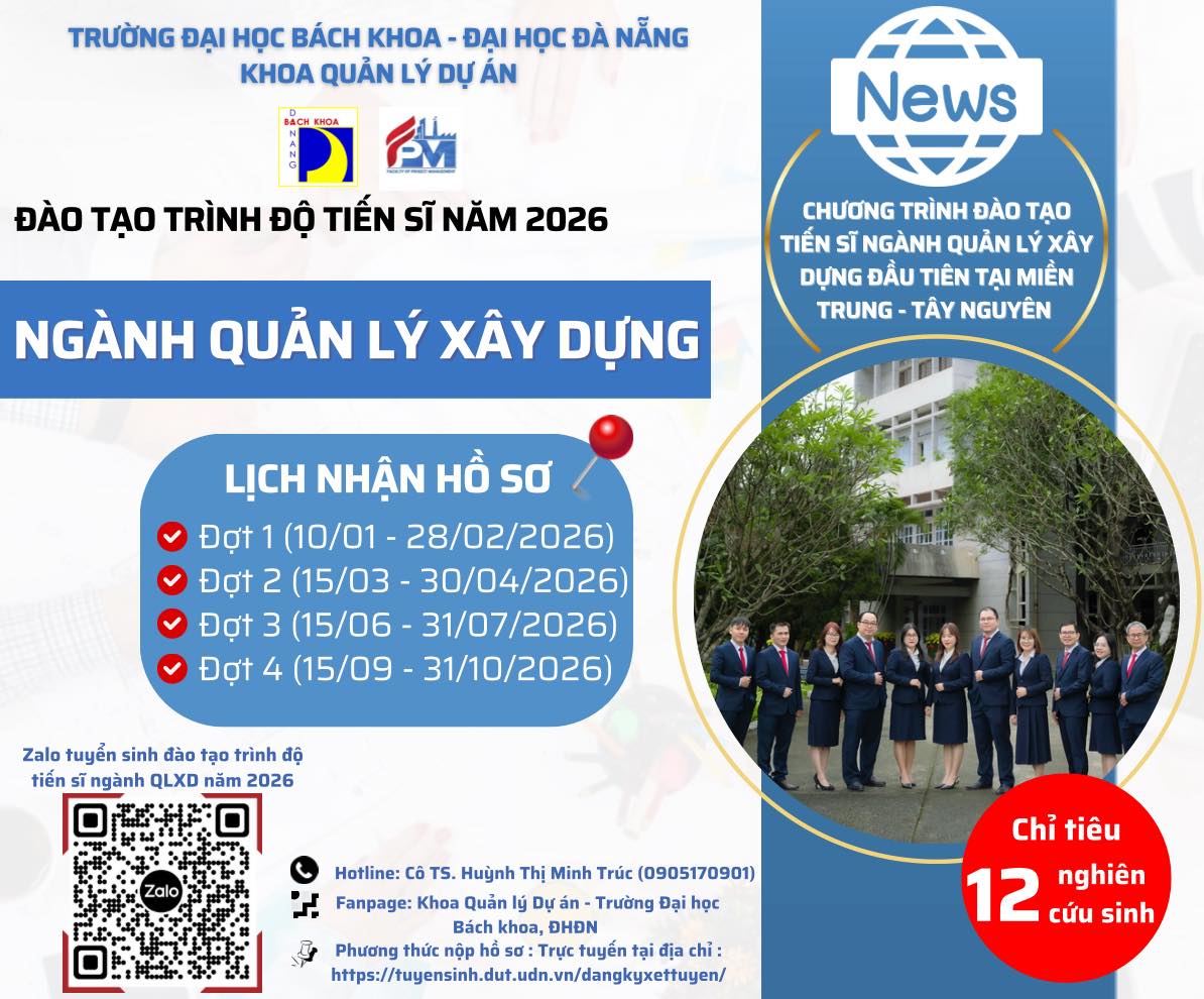 \Nếu bạn đang theo đuổi con đường đó, thì chương trình tuyển sinh Tiến sĩ 2026 ngành Quản lý xây dựng – Trường Đại học Bách khoa, ĐH Đà Nẵng chính là cánh cửa dành cho bạn.