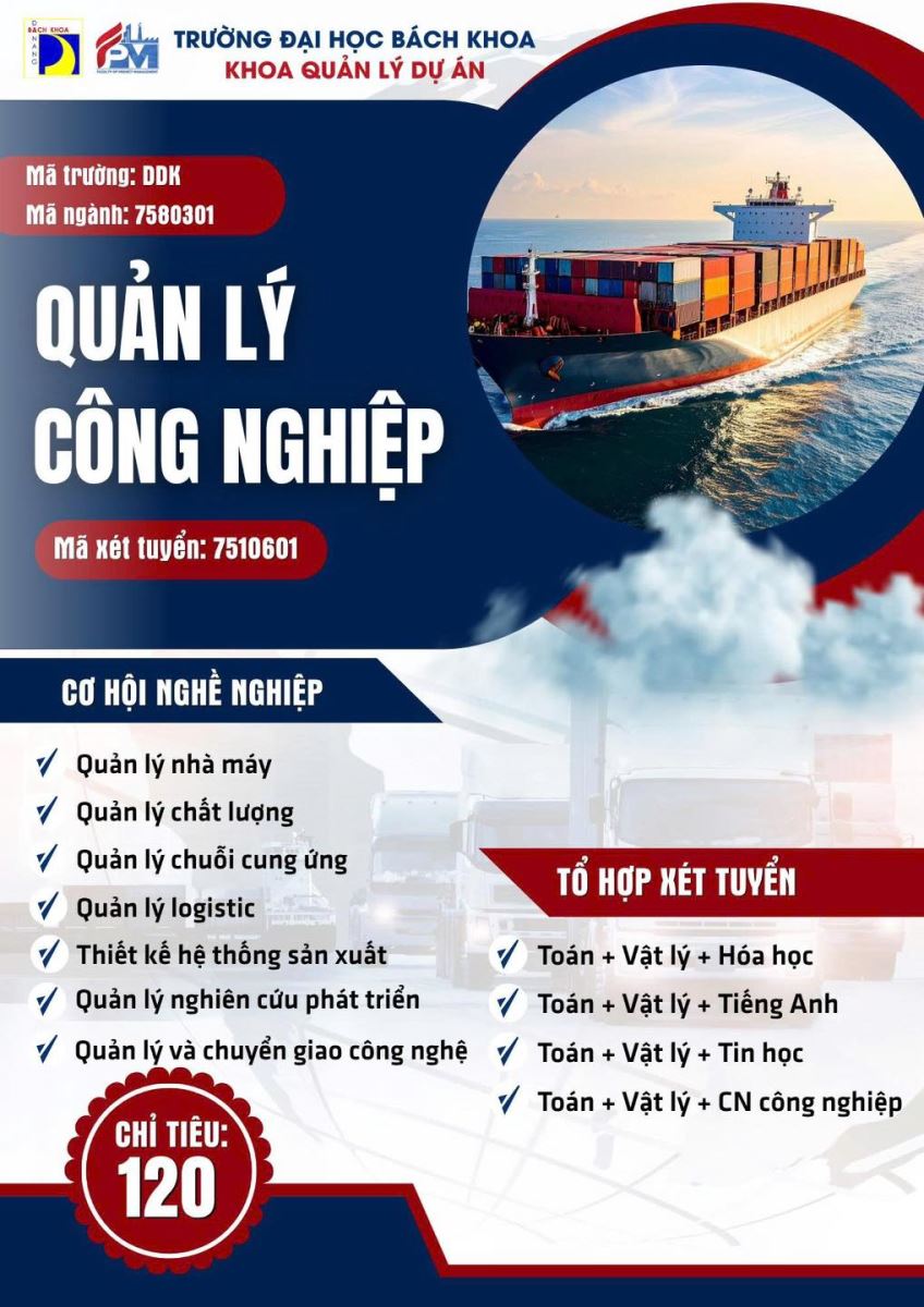 Tên ngành: QUẢN LÝ CÔNG NGHIỆP (Từ năm 2023 mở mới chuyên ngành : LOGISTIC VÀ QUẢN LÝ CHUỖI CUNG ỨNG)